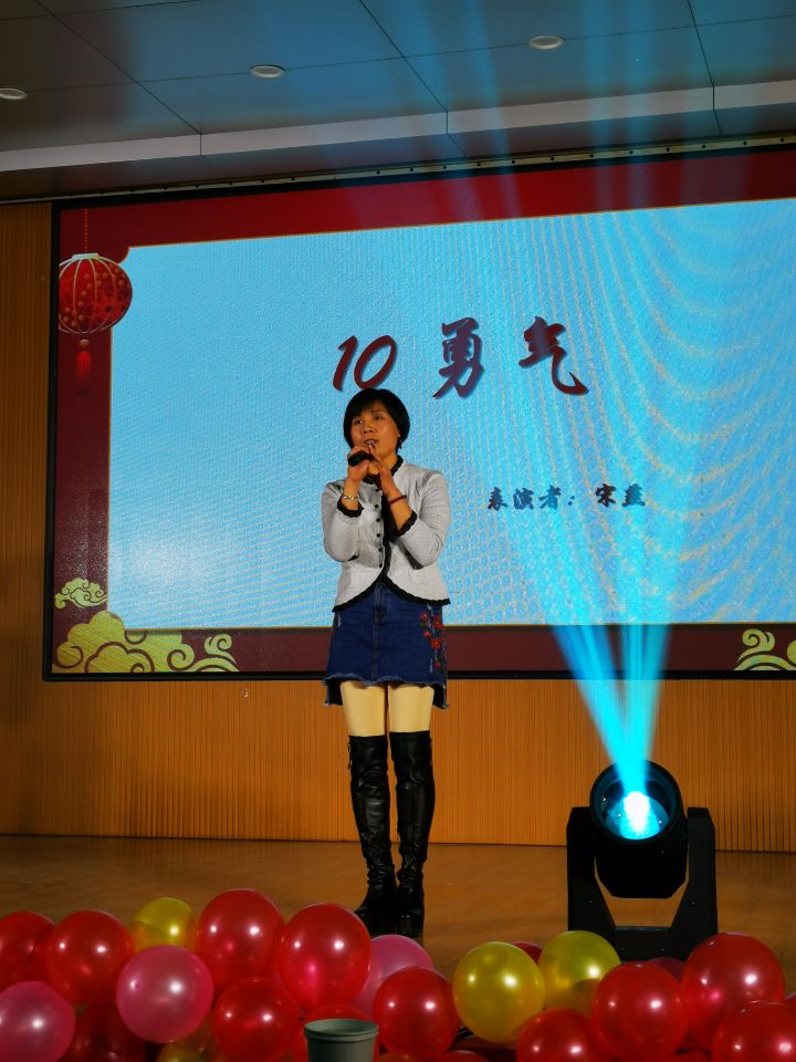 机关工会小组为大家带来歌舞串烧《小跳蛙 相亲相爱一家人》,给晚会增添了更多的欢声笑语,展现了老师们可爱俏皮的一面。