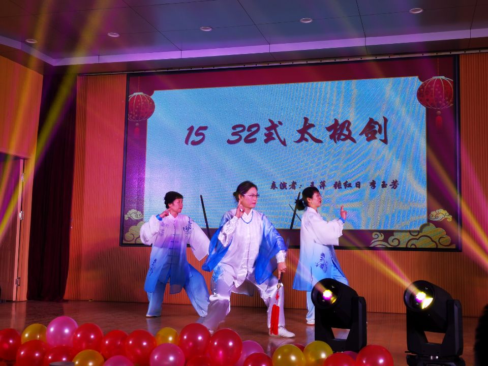 王萍、张红日老师和亲友团李玉芳为我们带来《32式太极剑》表演,它动静开合,刚柔相济,挥洒自如。