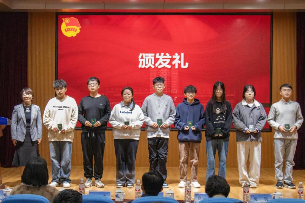 耿倩为新发展团员代表颁发团员证