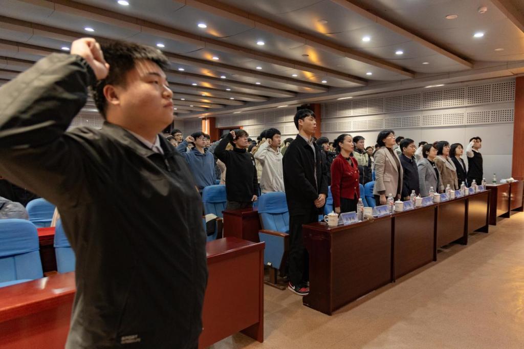 11月28日下午,伟德bv1946官网、化工学院、材料学院于J6-434联合举办2024年下半年新发展团员入团仪式暨“青马工程”基础班开班仪式。本次活动以“强国有我,青春挺膺”为主题,旨在培养青年团员的责任感和使命感,同时为党培养和输送青年政治骨干。校团委书记高一丹、材料公司党委副书记兼副经理李建楠、校团委正科级干部耿倩出席仪式,化工学院团委书记易凡、材料学院团委书记马韶霞及三个学院的团干部、团员代表、新发展团员、全体青马班学员参加仪式。仪式由伟德bv1946官网团委书记孙金香主持。