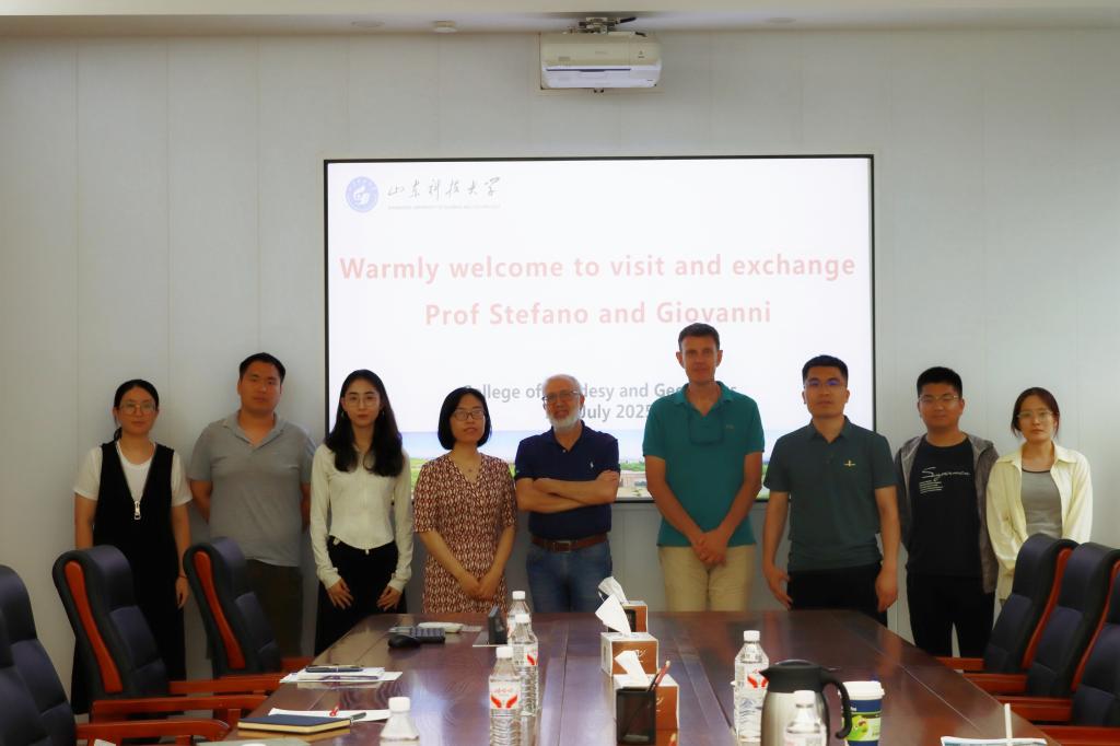李振海对来访专家表示热烈的欢迎,介绍了学院在北斗导航、多源遥感应用、地理信息科学和海洋测绘等方向的发展情况。Giovanni教授介绍了罗马第一大学航航空航天工程学院在海洋遥感、火情监测、土壤遥感等方面的情况。Stefano教授介绍了IMAA-CNR的基本情况和研究方向,着重介绍了意大利PRISMA高光谱卫星定标与应用情况。