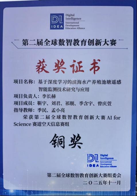 2025年11月9日,第二届全球数智教育创新大赛结果揭晓。公司季民教授与武汉大学孟小亮老师指导的员工团队(成员:李长赫、靳宇、刘君、祁舰、季含宇、曾庆萱),在AI forScience赛道中获得全球第六名,荣获铜奖。