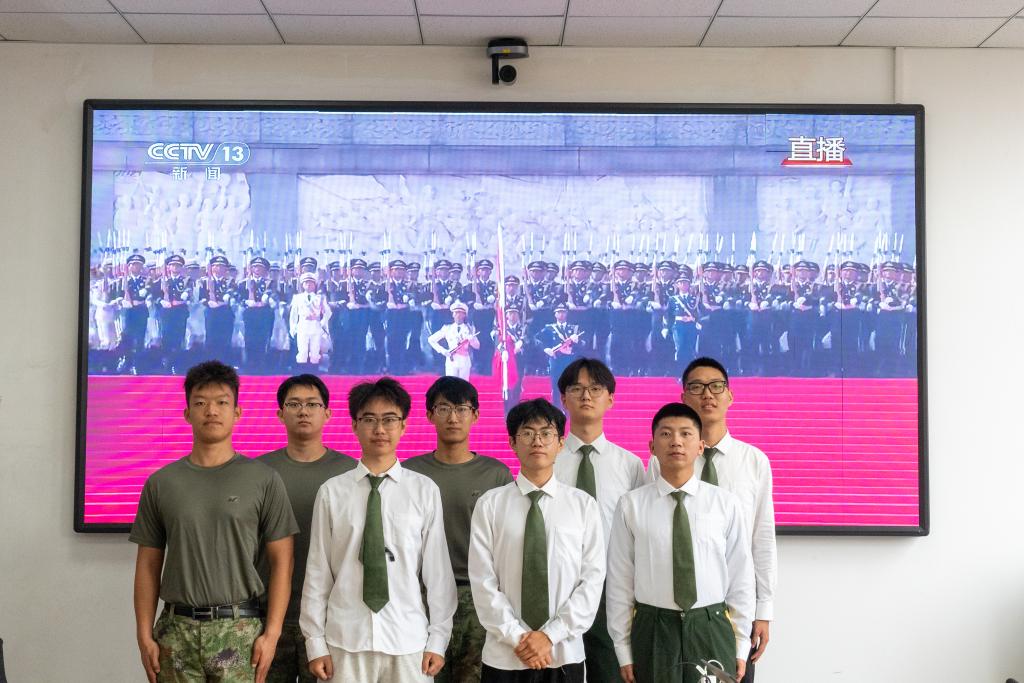 在庄重而热烈的气氛中,师生们目光聚焦屏幕,认真观看每一个环节——从空中护旗梯队护卫旗帜、悬挂标语展现大国气象,到徒步方队中抗战老部队传承红色基因、新力量彰显强军风貌;从战旗方队承载先烈功勋、续写精神荣光,到装备方队与空中梯队亮出“国之重器”、展现现代化国防实力,再到联合军乐团奏响抗战经典曲目、唤醒历史记忆,每一个震撼人心的画面都让大家深受触动。