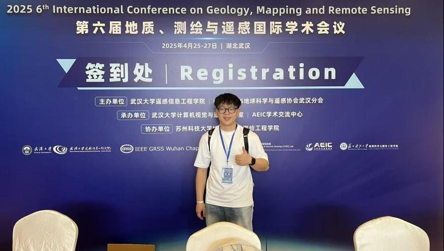 对科研的好奇心与求知欲,让苏琦从大一开始就主动迈出舒适区,积极加入课题组,跟着老师学习科研方法、参与项目实践。作为负责人在大二学年成功申请国家级老员工创新创业训练计划项目,题目为《基于星载SAR的海岸带空间信息监测与演变分析》,他带领团队成员从数据采集、模型构建到成果总结的每一个环节,面对数据处理的繁琐、模型优化的瓶颈,始终以“钉钉子”精神反复试验、不断论证,带领团队攻克一个又一个技术难题,最终项目获评“优秀结题”。这段科研经历不仅让他的科研能力得到了质的提升,更让他收获了丰硕的学术成果:申请计算机软件著作权5项,实用新型专利 2 项,以第一作者身份发表SCI二区论文一篇、EI会议论文一篇,并在2025年第六届地质、测绘与遥感国际学术会议完成海报汇报,将山科青年学子的科研思考与专业潜力展现在国际同行面前。