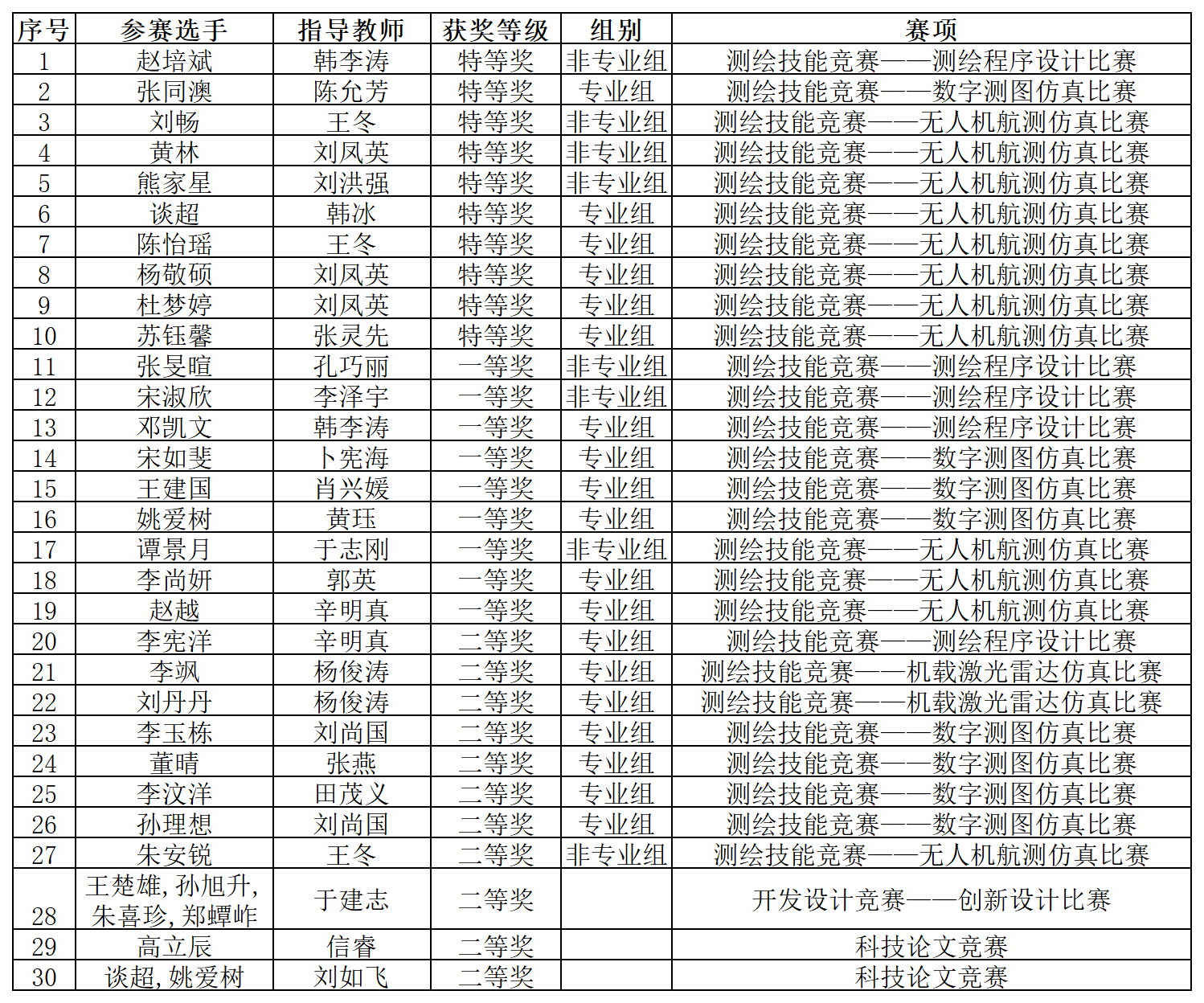 此次成绩的取得,是公司不断提高员工创新能力、推进产教融合的生动实践。下一步,学院将深化员工创新实践能力培养,落实“以赛促教、以赛促学、以赛促创”的理念,不断激发测绘学子的创新潜能与创业热情,为行业发展培育更多新时代测绘人才。(通讯员:韩冰)