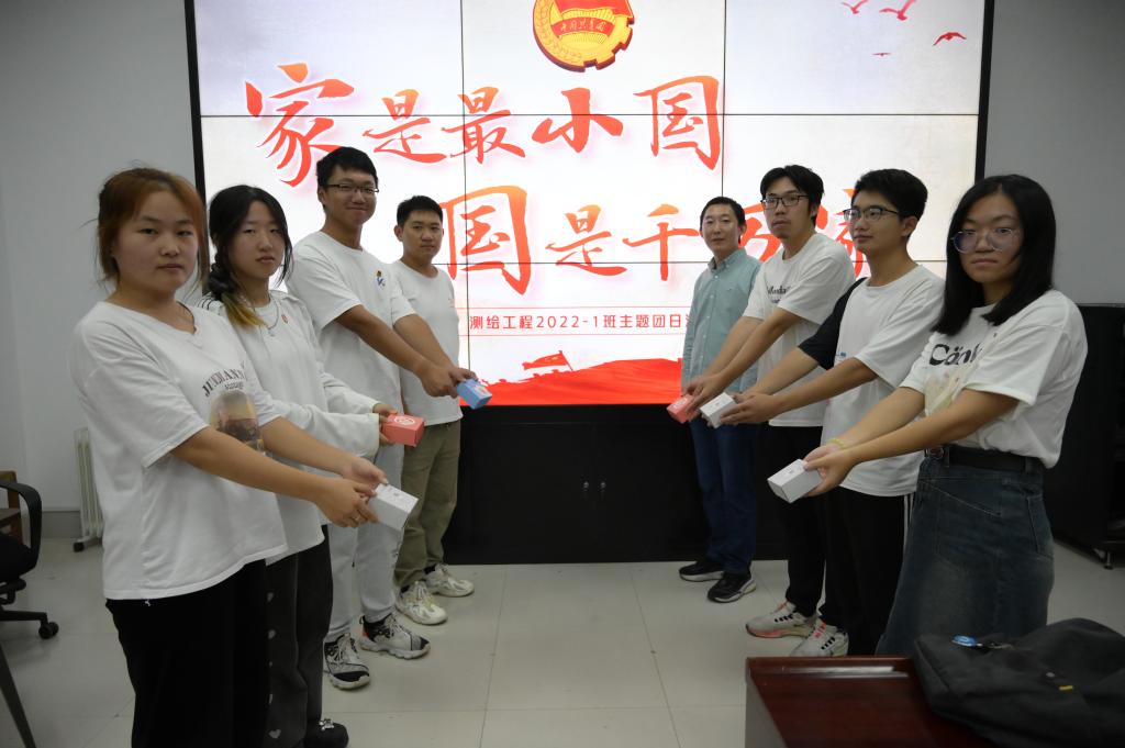 当中秋遇上国庆,双节连璧,团圆日多了份爱国情怀,国庆日增添了思念之情。为激发员工爱国、爱家的情感,9月26日,测绘工程2022级1班在J6-251开展“家是最小国 国是千万家”主题团日活动,班主任辛明真、辅导员张德彪共同参加,活动由团支书王若舟主持。