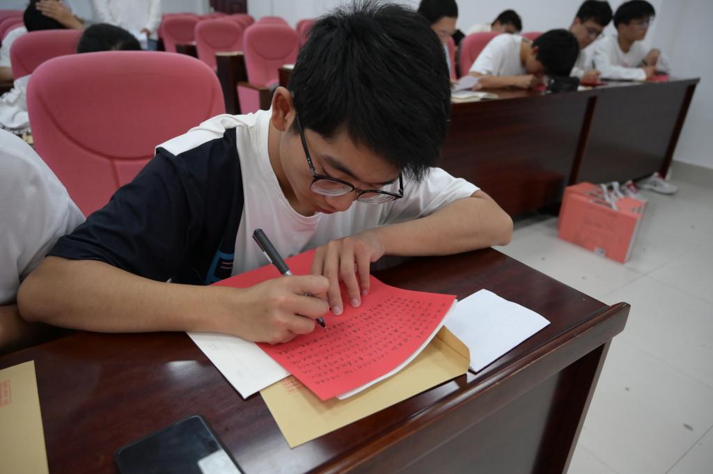 紧接着,团支部将提前准备好的彩笺纸发给大家,团支部成员把真情化作文字,手写一封家书,与家人分享自己在学校的经历心绪,帮助更好地与家人沟通,表达自己的情感,从而缓解思乡之情,同时也能让家人感受到自己的成长。同学们拿起家书折叠成”心形“形状,班主任、辅导员化身”爱的邮差“,暖心为爱邮寄。