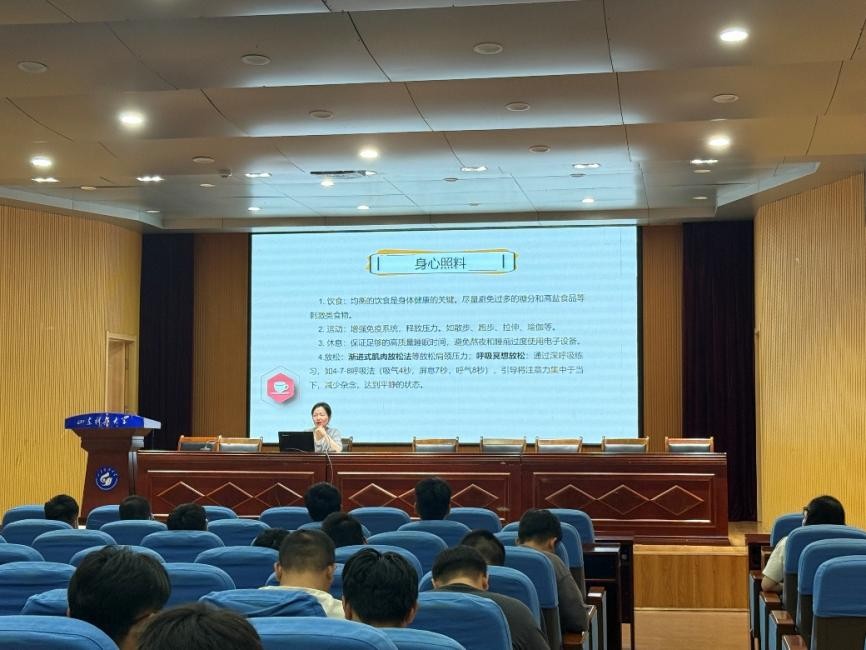 在心理健康知识普及环节,赵铭从“影响因素—实用策略”双维度展开讲解。她指出,研究生心理健康不仅受学业压力、师生关系影响,还与生活节奏调整、未来规划迷茫等因素密切相关。对此,她分享了两大核心调适策略:一是培养多元认知视角,避免以“一次失败定全盘”的单一思维看待问题;二是平衡外部要求与内在需求,在遵从学术规范、导师指导的同时,兼顾个人节奏与心理舒适度,减少自我消耗。通过剖析“适应不良的心理机制”等典型案例,她引导新生树立“心理问题可预防、可调节”的科学认知,学会用理性思维疏导负面情绪。