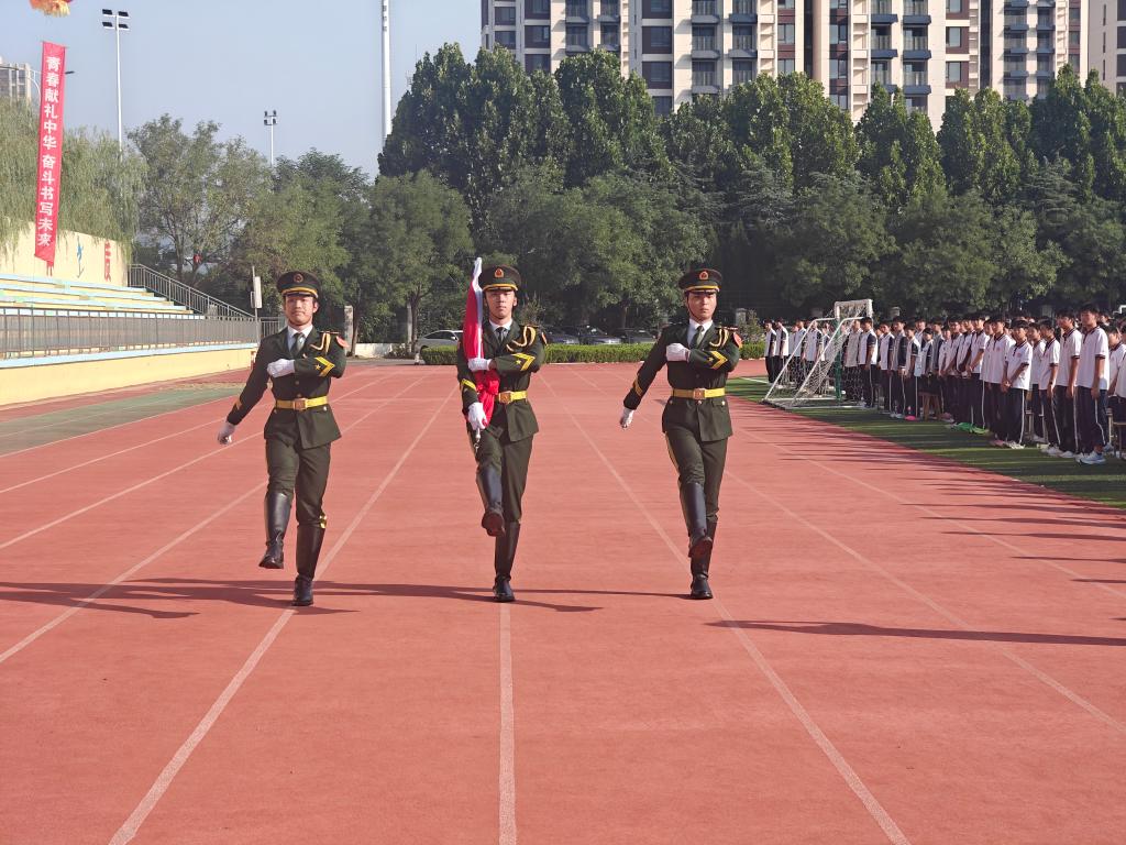 7时50分,仪式正式开始。全场肃立,三名队员迈着铿锵有力的正步,护卫着五星红旗走向旗台。《义勇军进行曲》奏响,升旗手振臂扬起国旗,鲜艳的五星红旗冉冉升起。全体师生肃立致敬,嘹亮的国歌声回荡在校园,爱国情怀在每个人心中激荡。